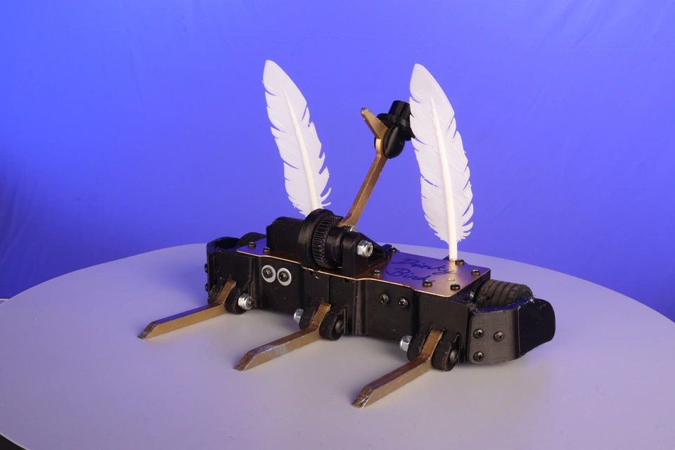 Like any good idea, it’s quickly stolen and implemented in a new place and a new way. For Drinky Bird, we hoped that an axial spring was the answer to our self-righting woes. The goal here was to bias the motor torque in the forwards direction, giving it enough power to self-right without removing its ability to correct itself from the rear flipped position. As an added bonus, this means more power going into the forwards swing to hit the opponent with.