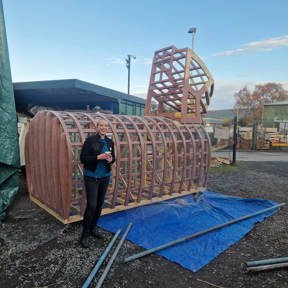 Our structure was made of Bent lamination plywood & 2x4 Construction timber with a Wiremesh skin covered in hand-stitched hay/hessian panels secured with jute netting, every day is a school day and i can confidently say with our team, we are in a small pool of global experts on sewing hay to fabric with jute, staples and good,it's a competitive skills scene with literally ... tens of people globally haha!!