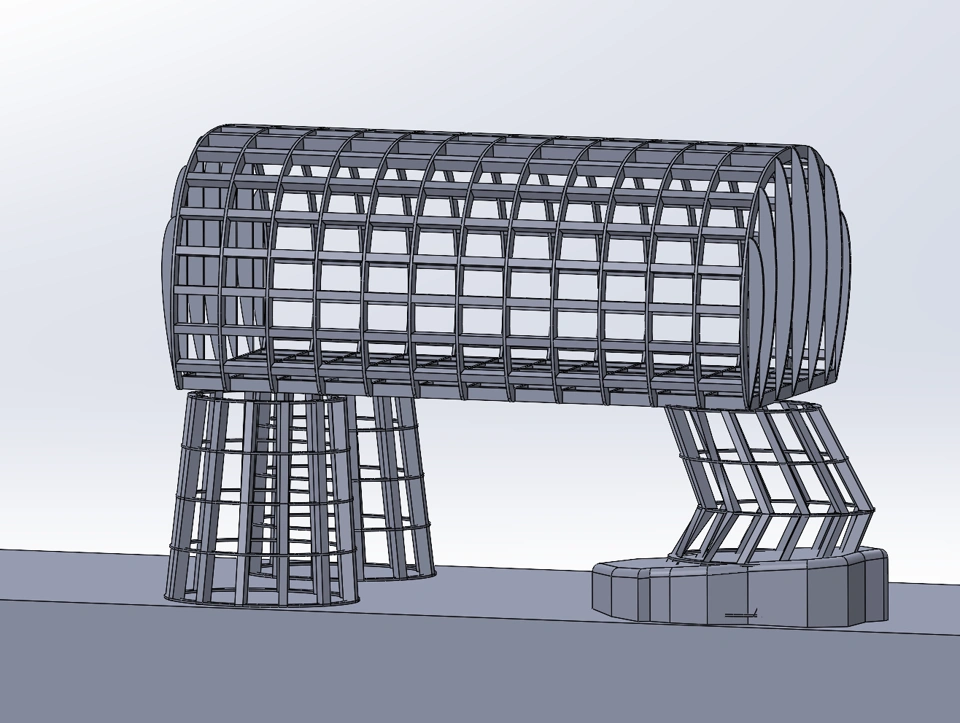 We built a core structure in collaboration with our wood fabricator to match his fabrication intent and simulate a weight close to reality for designing the trailer and performing appropriate weight-loading calculations (ask me about the varying weight of straw under various weather conditions, haha...).