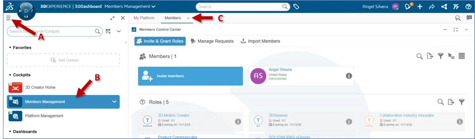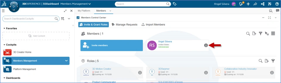 Open your dashboard list and click on the Members Management cockpit, then click the Members tab.