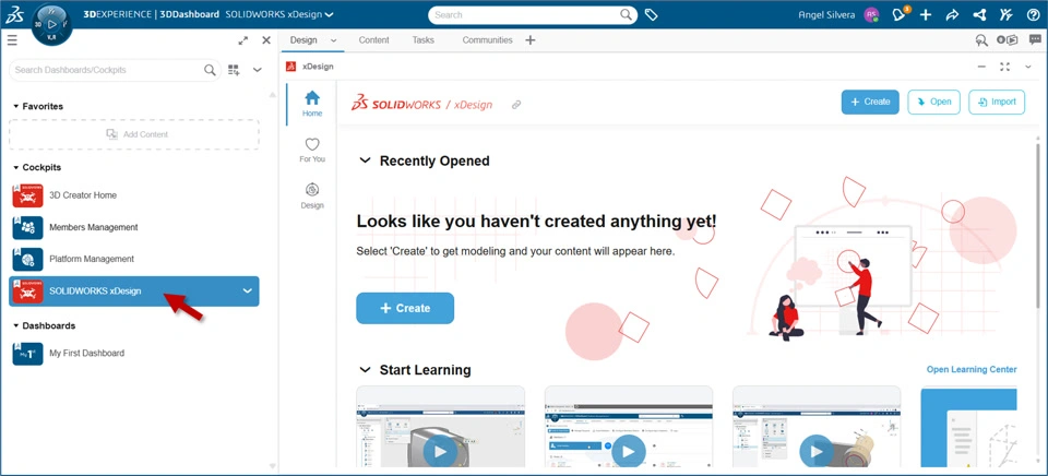 Return to your Dashboards list and click the new SOLIDWORKS xDesign cockpit to start designing.