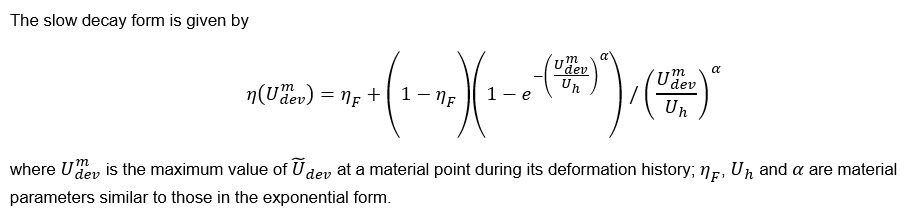 You probably want to browse that post first. Congrats to Stuart ! He was reading through a 2008 Abaqus Users' Conference paper (attached below) by Jorgen Bergstrom. Jorgen proposed something he called the "Dynamic Bergstrom-Boyce" model (DBB) in order to capture the Payne effect. Stuart recognized that he could achieve the same type of model using a PRF model with a special form of Mullins damage. After some consultation with Juan Hurtado, Stuart prototyped this using a UMullins user-subroutine. That special form of Mullins damage was implemented natively in Abaqus version 2025x FD02 and called :