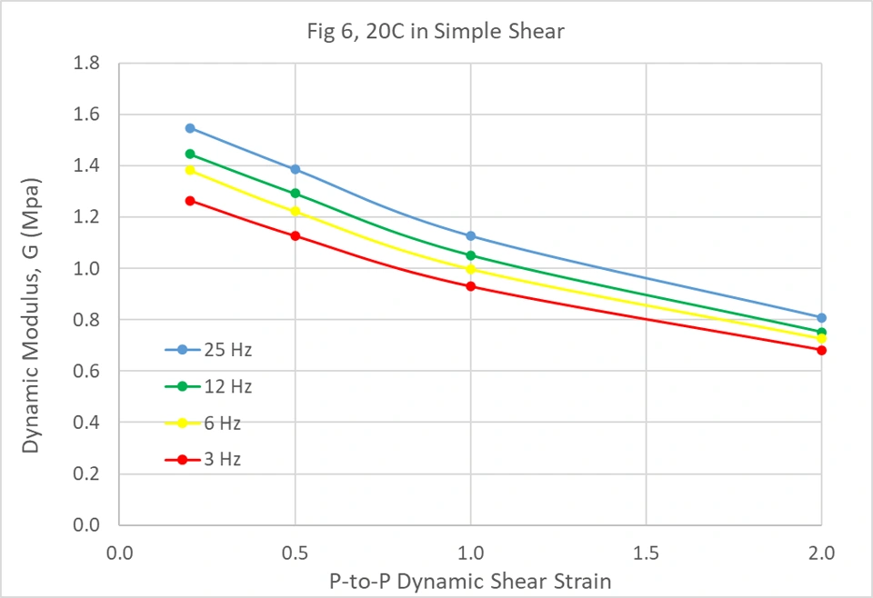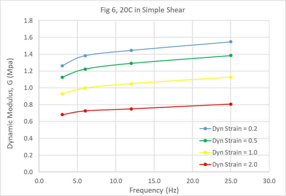 So, task number one in this post is just to share some DMA test data that has both frequency sweep and a dynamic strain sweep information. Task number two is to discuss how one can use the Material Calibration app in 3DX to model these effects.