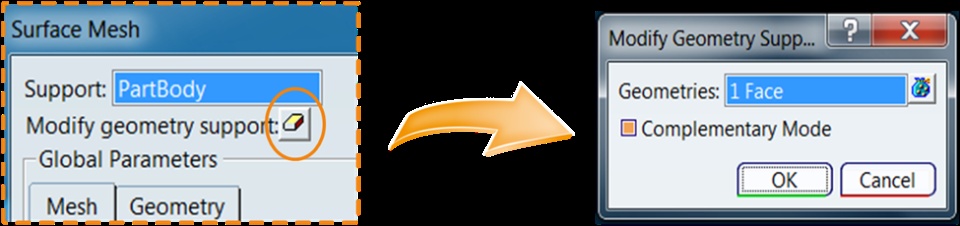 (3) Activate the complimentary mode in the Modify Geometry Support dialog box, as shown below.