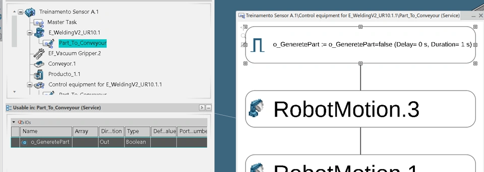 In the robot’s Task, there is a pulse connected to the part-generation IO Output. I believe the corresponding IO Input is not working correctly because the tutorial does not explain how the conveyor’s FrequencySignal (Input) was created. Since it didn’t appear for me, I created it manually, but it has no value, as shown in the image below.