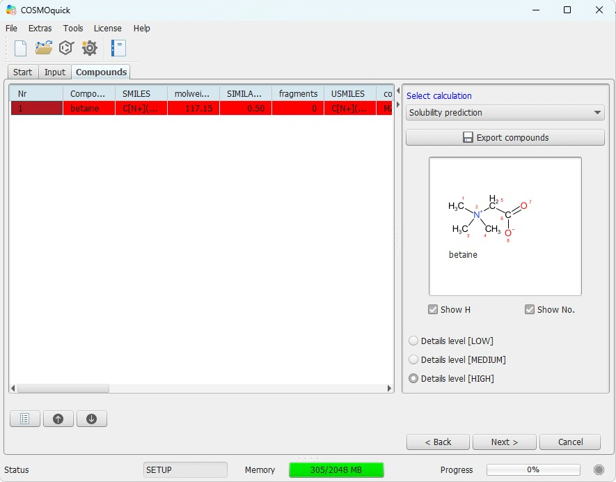I am investigating the solubility prediction of binary solute systems in Natural Deep Eutectic Solvents (NADES) using COSMO-RS (COSMO-quick >> solubility prediction).