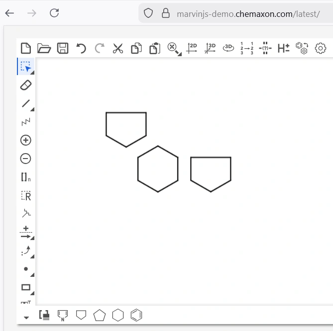 Though the regular shape is more frequently used, on occasion, the truncated shape (after a unilateral drag to about 104%) suits my needs better and I would welcome if future releases of the editior could ship with a template accordingly. This discrepancy in side lengths equally is observed if i) the structures are marked, and subsequently redrawn e.g., by Load settings -> ACS document. Or ii) the ACS1996 style is load ahead of using the templates.