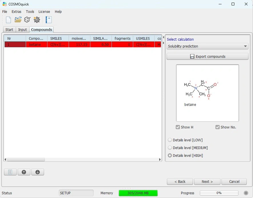 I am investigating the solubility prediction of binary solute systems in Natural Deep Eutectic Solvents (NADES) using COSMO-RS (COSMO-quick >> solubility prediction).