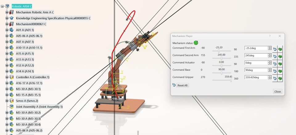 I am trying to modularise the existing CAD project tree to mirror the system structure of the robotic arm (gripper, wrist, base ...).