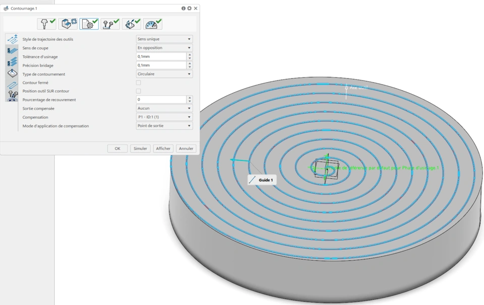I'm trying with 3dexp to program a contouring with cutcom with a special curve : a spiral.