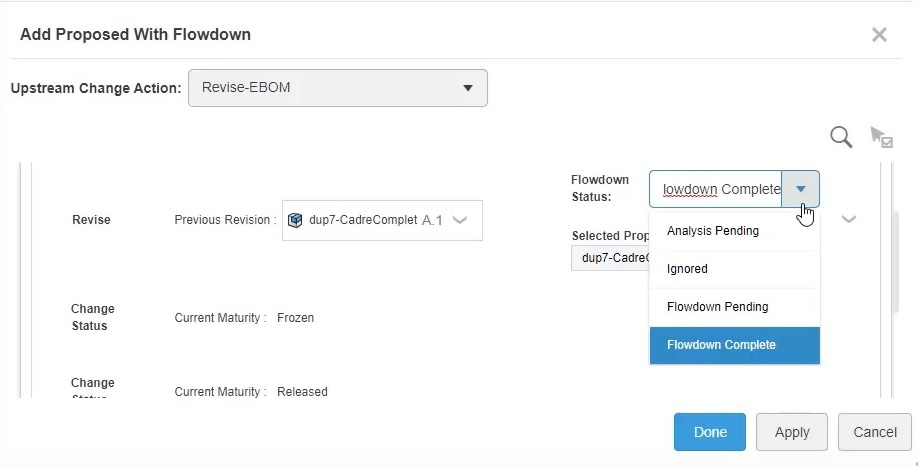 Is it always necessary to clik and choose a flowdown status for every single item when Deoendency is set in a CA? With more complex changes, this becomes a little anoying. Is there a way around this?