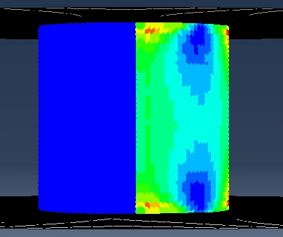 Following the documentation, I then attempted to increase the number of neighbours. When I set the neighbour count to 30, the simulation becomes unstable and a “particle explosion” occurs. Additionally, the resulting contour plots show that only approximately half of the cylinder undergoes deformation, which seems unphysical.