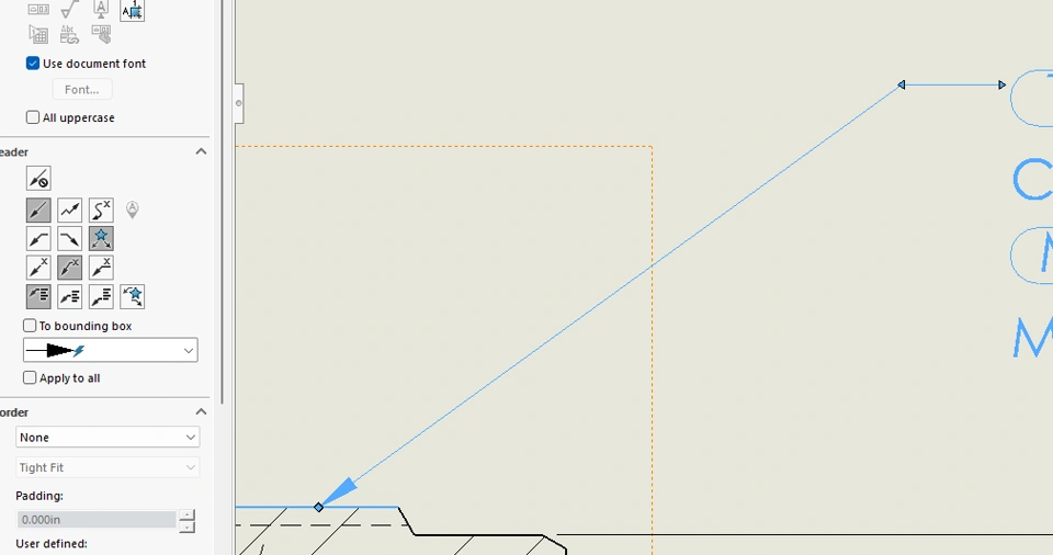 Hi, when inserting a cosmetic thread callout, the leader behaves as expected with a plain leader, however, if I add a jog (covert it to a multi-jog leader), the leader no longer attached to the callout note at the top, but shifts to the centre alignment. The options in note properties aren't changed, nor greyed out, and changing it doesn't move the leader attachment. I've tried forcing it to refresh, moving the view/note, closing and reopening SolidWorks, etc.