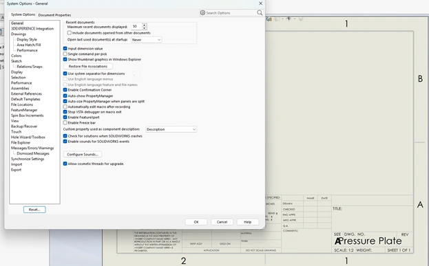 As soon as I touch Tools/Options, the screen behind the toolbar will change to be the drawing sheet.