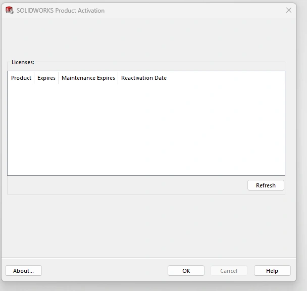 2. Going on Solidworks>Licenses>Deactivate license, but I don't have any licenses that are being shown.