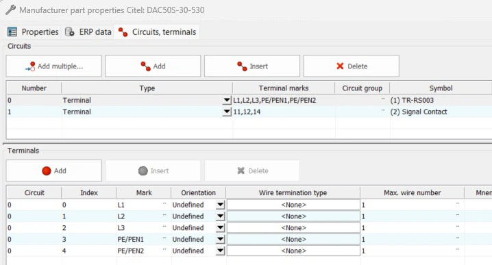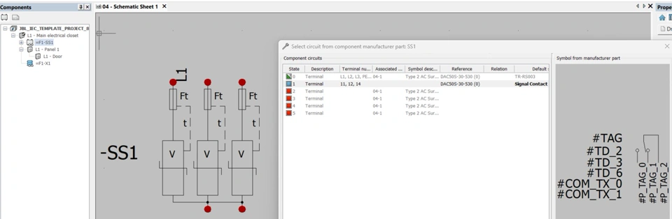 I'm trying to create a surge suppressor part that uses two symbols but I'm not getting the terminal numbers to assign correctly. The suppressor symbol is assigned a "Parent in table" cross reference type and the remote signal symbol is assigned a "Child" cross reference type. In the Manufacturer part properties, the suppressor symbol is assigned to the multiwire scheme. After adding the manufacturer part to the project, I can insert the symbols from the manufacturer part circuits, but the terminal numbers are not correct.
