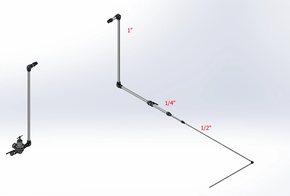 I am working on a compressed air line for my company that starts at 1" and provides air to a manifold before reducing in size to 1/2" and finally 1/4" and then goes to it's final connection point at 1/4" thread.