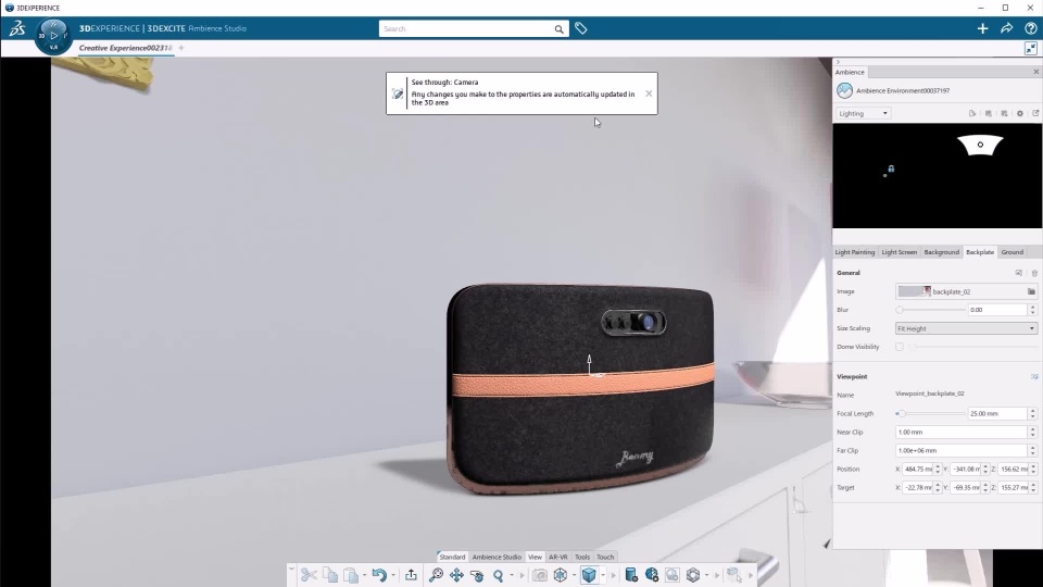 Camera matching for backplate rendering in Creative Experience