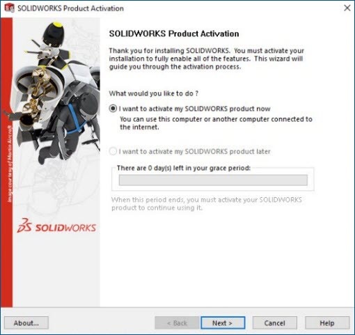 2. Select the “I want to activate my SOLIDWORKS product now” option.