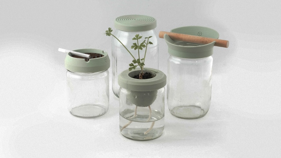 These 3D-printed bioplastic lids can turn any old jar into a Swiss Army knife of storage