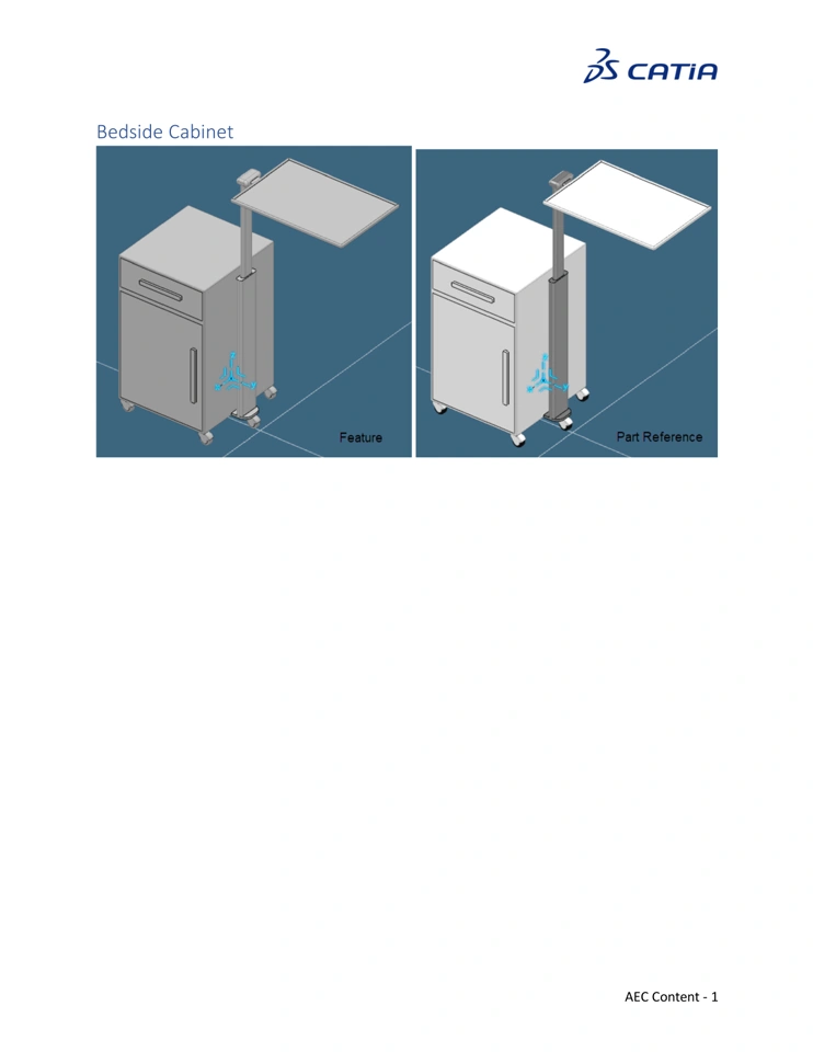 The Input Axis System for the bedside cabinet is centered at the rear base of the cabinet. The X axis is in the same direction as the bedside cabinet front.