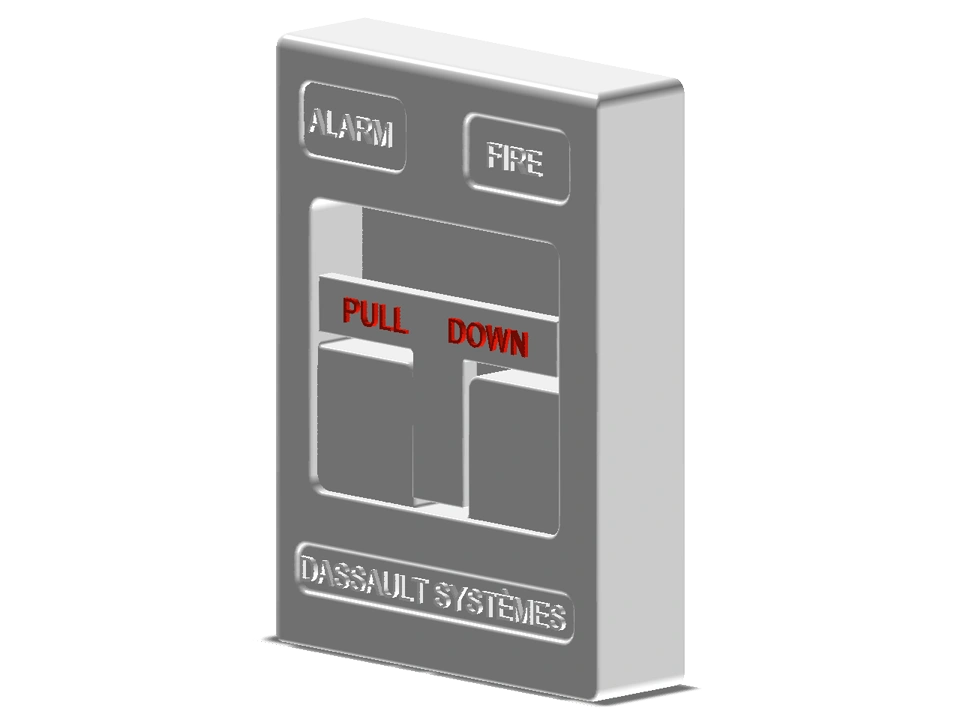 The Input Axis System for the fire alarm pull station is centered on the back mounting surface. The X axis points in the pull station front.