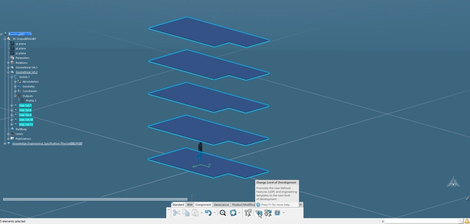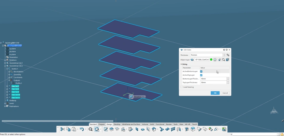 Floor/Slab Objects can be used with Building 3D Design to convert low-level slab features into higher-level slab features. These features can then be converted to an even higher-detailed product assembly structure.