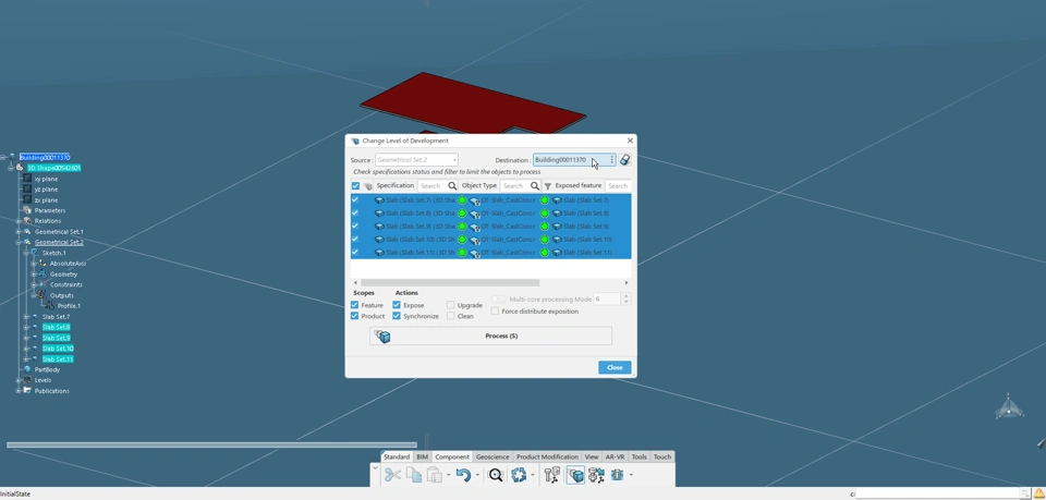 Select "Process." Once complete, the floor/slab assemblies should now be created in the desired product