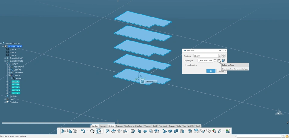 Create the desired slabs using the "Slab" function in Building 3D Design