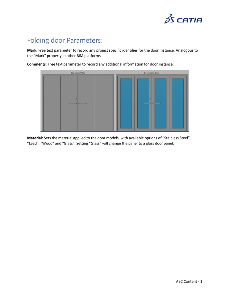Material: Sets the material applied to the door models, with available options of “Stainless Steel”, “Lead”, “Wood” and “Glass”. Setting “Glass” will change the panel to a glass door panel.