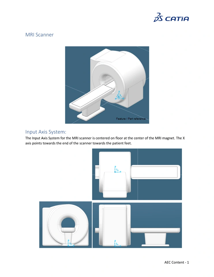 The Input Axis System for the MRI scanner is centered on floor at the center of the MRI magnet. The X axis points towards the end of the scanner towards the patient feet.