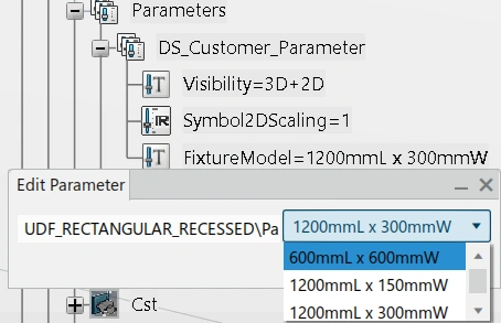 This parameter is located under "Parameters" > "DS_Customer_Parameter". Select here the desired model of this fixture type.