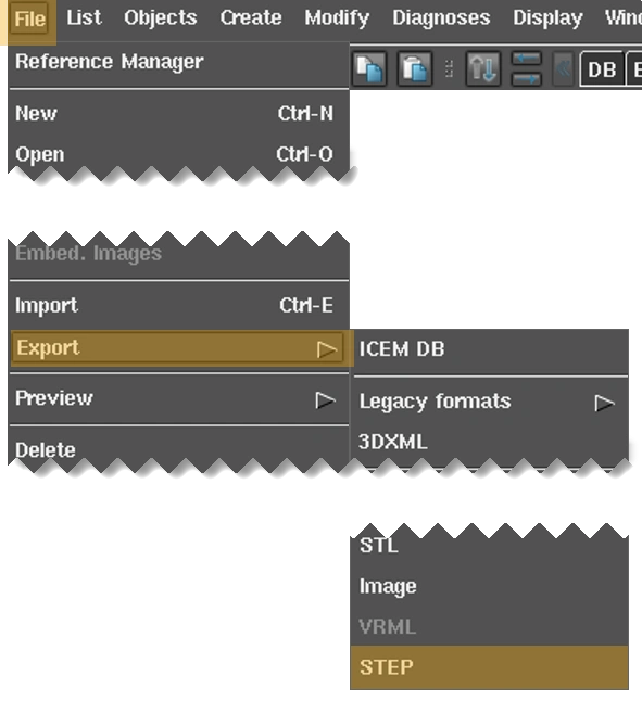 - In ICEM Surf 2025.0, the Import/Export of STP / STEP format is available.