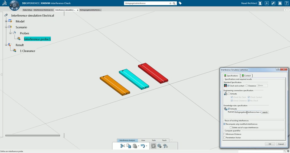 The interference rules is used to customize and control how interference such as clashes, clearances, or contacts are computed.