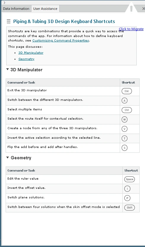 Different keyboard shortcuts are available to accelerate and facilitate the routing of 3D pipes.