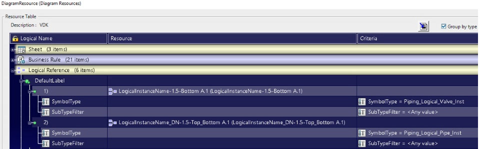 Then this logical reference is pointed on DefaultLabel resource with the SymbolType equal to the logical instance type (for exemple : Piping_Logical_Valve_Inst) :