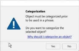 If you "select in 3D" an object that has not be ergo categorized this panel will appear.This mean that you need to categorize the object in order to use it in the worker task. If you click on "Yes" the following categorization panel will open: