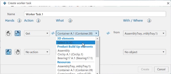 When creating a worker task inside EWD, you have the option to chose object you want to interact with by clicking on it in 3D.