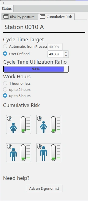 The ergonomic risk can also be calculated considering the all assembly sequences. This enhances the ergonomics assessment accuracy to better design workstations and products!