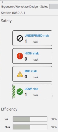 The task summary panel is divided in 2 tabs: "Value Added" and "Non Value Added". And the status panel contains an "efficiency" section.