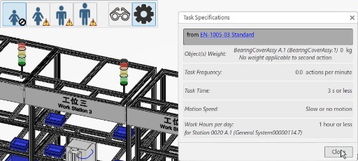 On the right of the manikin vision button, there is the task specificationbutton. By clicking, on it you will be able to see the task parameters: