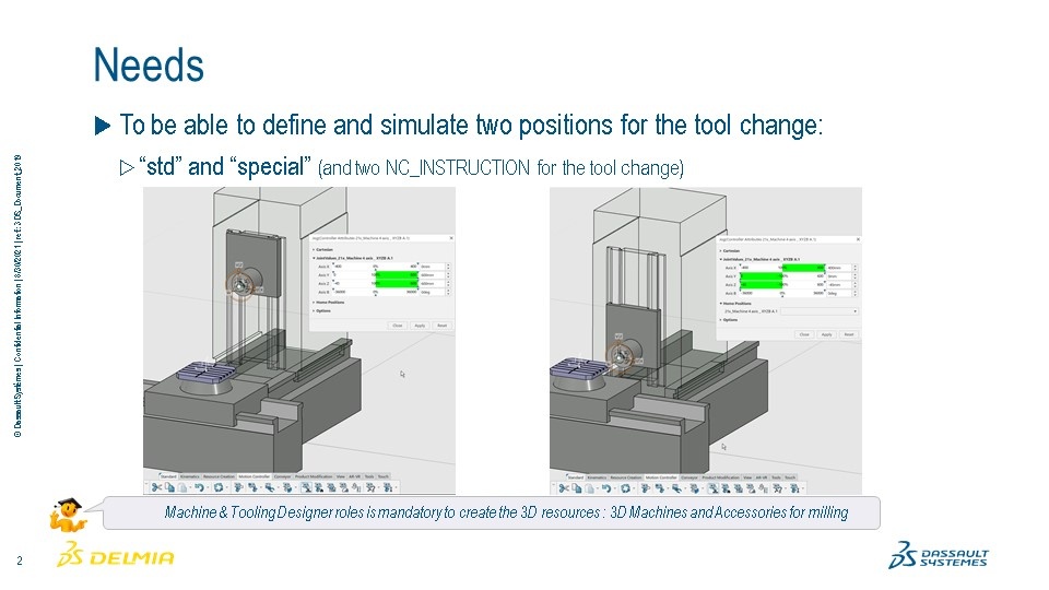 Since the 3DEXPERIENCE R2017x it is possible to create several tool change positions on the 3D machine (and to simulate)