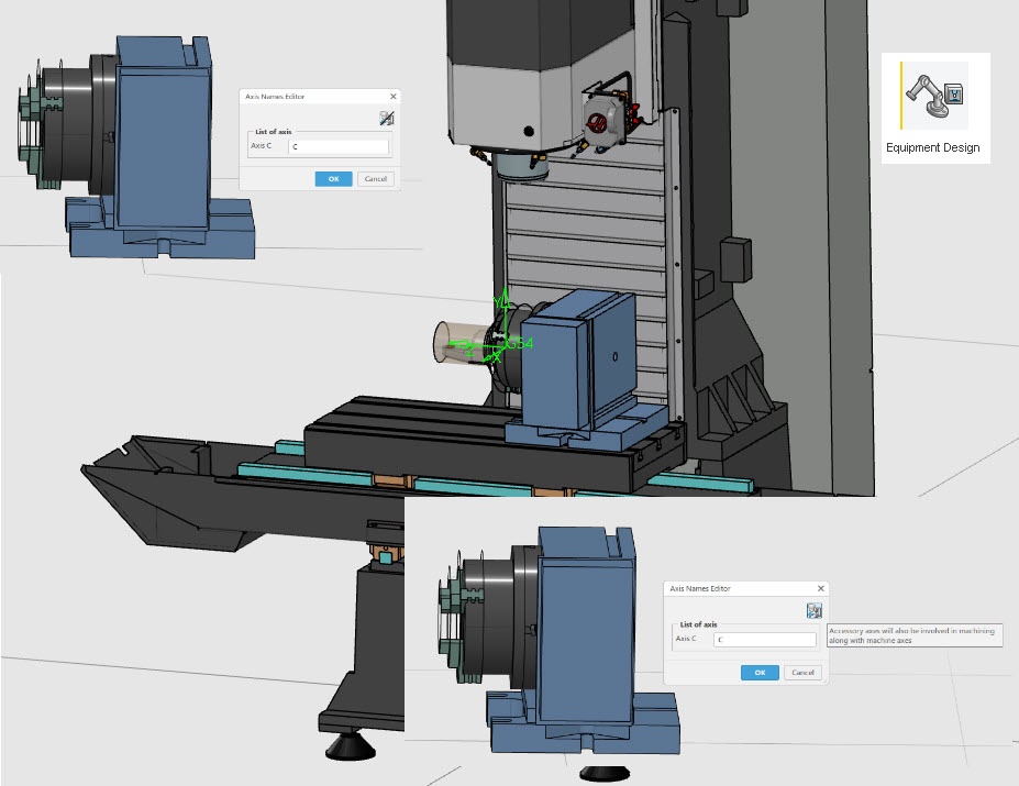 Before (and by default now) the axis position of the accessory has to be managed with Machine Instruction (locked) to do 4 axis positioning