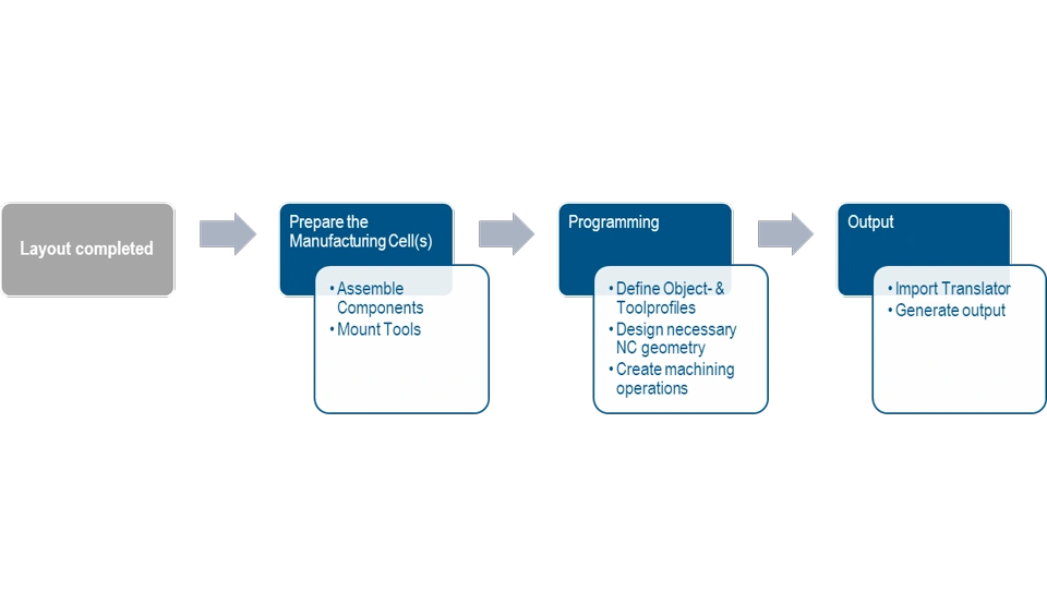 The „Machining Axis Systems“ which define the object profiles have to be positioned at the absolute origin of the manufacturing cell. The object profiles are automatically created, based on the machining axis systems, when generating the output.