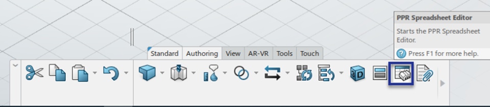 Select the Spreadsheet Editor command from the Authoring tab and select the root Mfg. item.