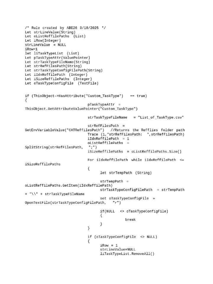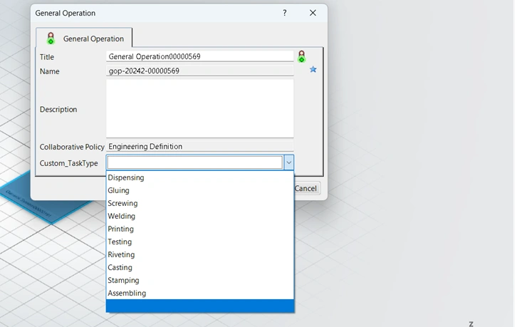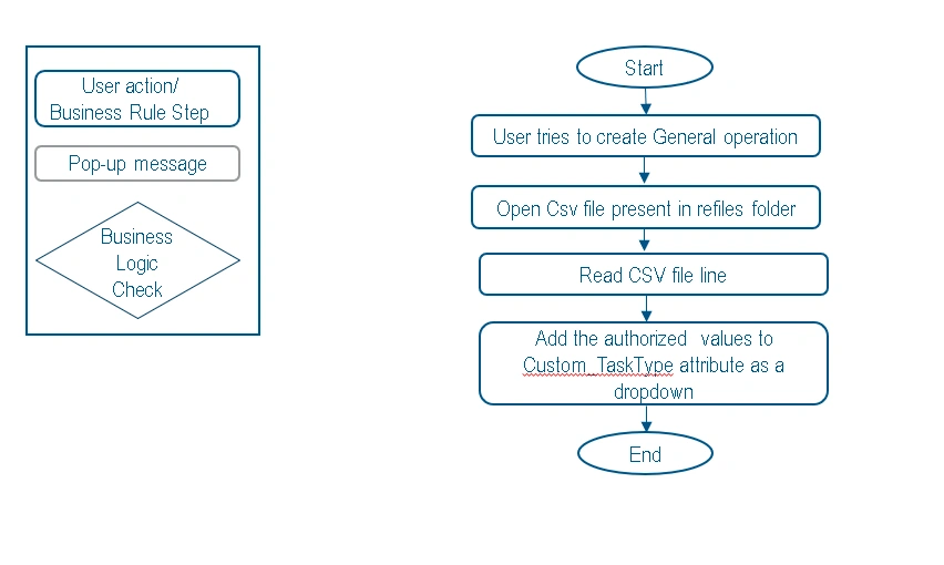 The below example reads CSV file which has various Task Types needed for an operation and this BL will loads them on the attribute “Custom_TaskType” in dropdown when user opens the Properties page of General operation Type.