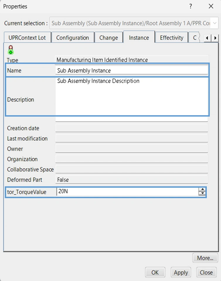 When an Mfg. Item is relocated in the tree using this BL we can copy the value of this custom attribute "tor_TorqueValue" from the old instance to the newly created instance of that item.
