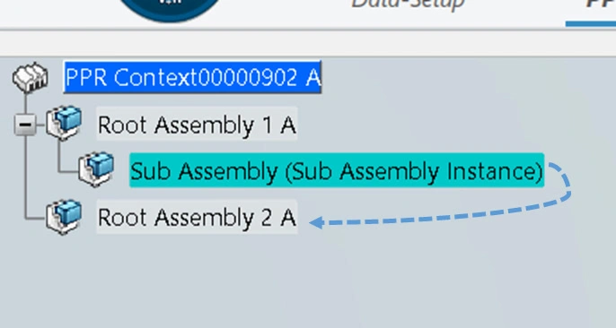 | Scenario | Drag and drop Sub Assembly from Root Assembly 1A to Root Assembly 2A |