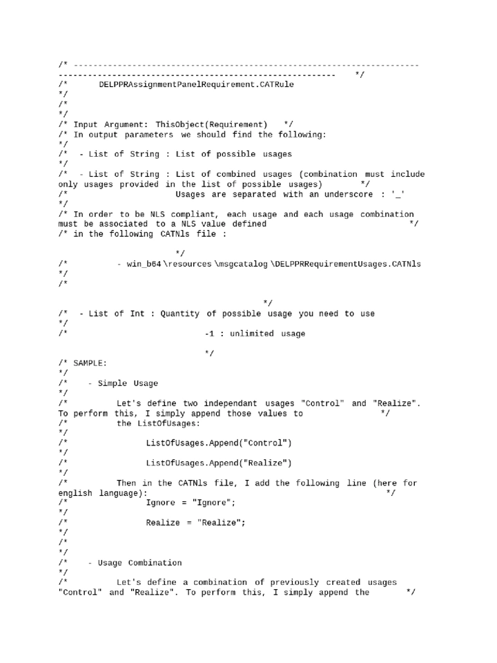 In order to be NLS compliant, each usage and each usage combination must be associated to a NLS value defined in the following CATNls file:  "Your_3DExperience_Installations\\win_b64\\resources\\msgcatalog\\DELPPRRequirementUsages.CATNls"