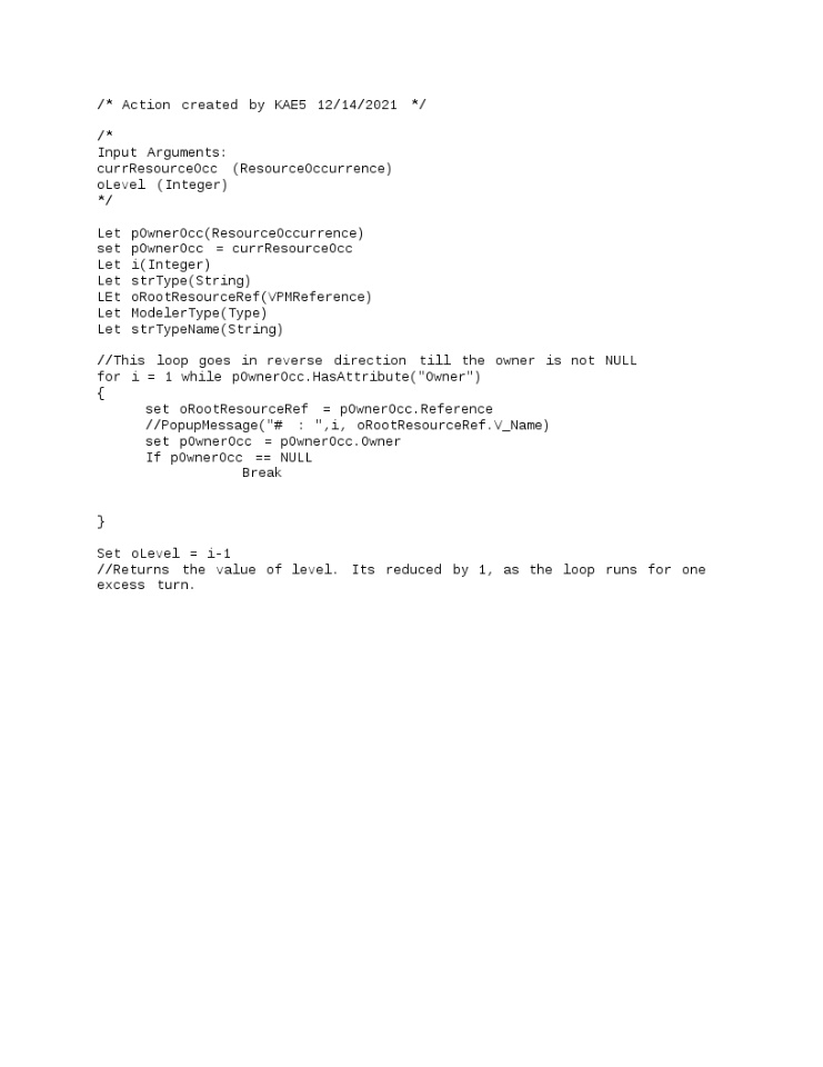 To get level of resource item in tree, another EKL script is called by passing Resource occurrence and a variable to store Level. The script returns the level of the passed resource as output.